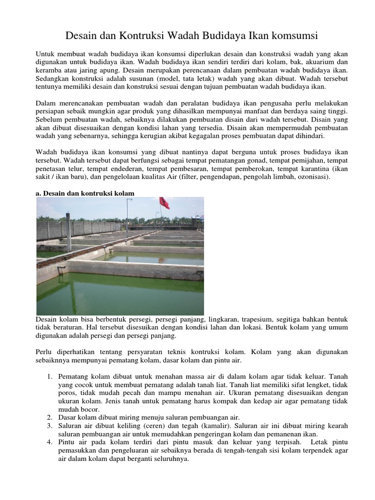 Desain Dan Kontruksi Wadah Budidaya Ikan Komsumsi Lubang Ilmu